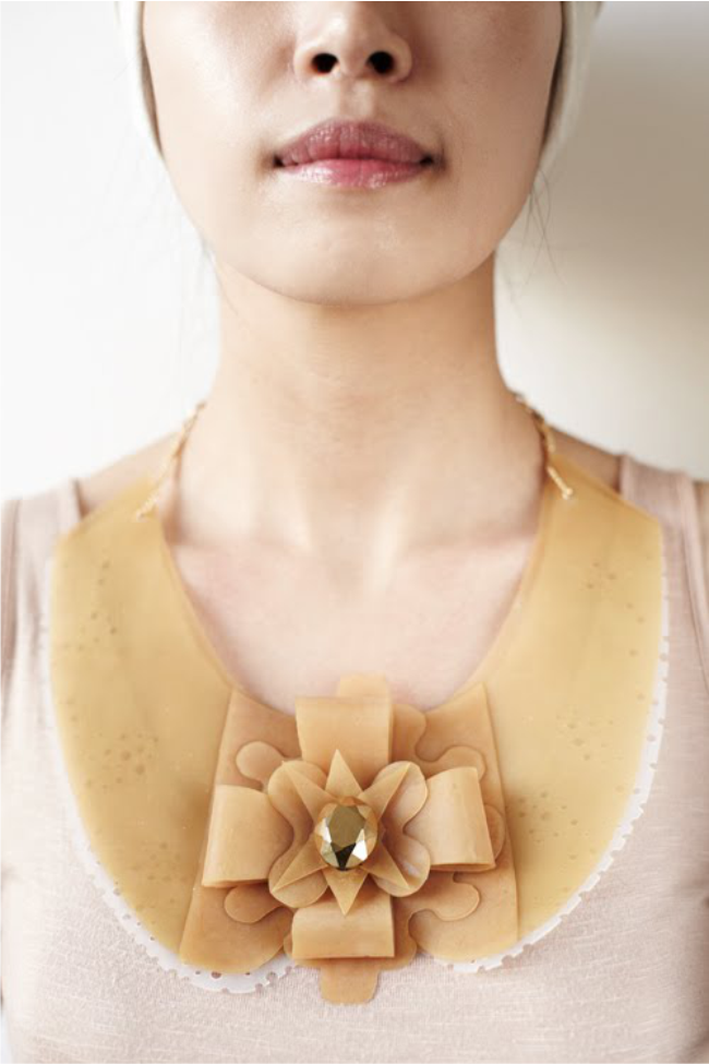 Lubimy miksować ze sobą plastik, sylikon i gumę z tkaninami,tworząc przy tym nowe tekstury i unikalne zestawienia kolorystyczne. Zaprojektowaliśmy również torby z jedwabiu, papieru i silikonu w limitowanej wersji dla Janelli & Volpi. Dzisiaj papier to konieczność; nasz naszyjnik z papierowych łódek jest naszym bestsellerem!